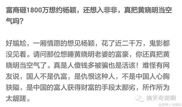 这则消息曝光之后,不知道杨颖的老公黄晓明,作何感想?看着老婆如此高的身价,是该高兴呢,还是该庆幸,幸好没有去?其实,杨颖到底知不道有“要价1800万”这回事呢?对于这个事件,网友的评论也是炸天了。