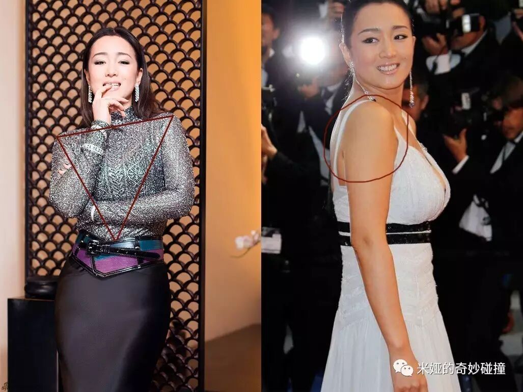 手臂粗:对着全身镜,镜子里面手臂相比于身体,看起来要粗壮,那就是手臂粗了,代表人物是巩俐,手臂粗多见于发福的中年妇女,所以一不小心就会有种“大妈”感。