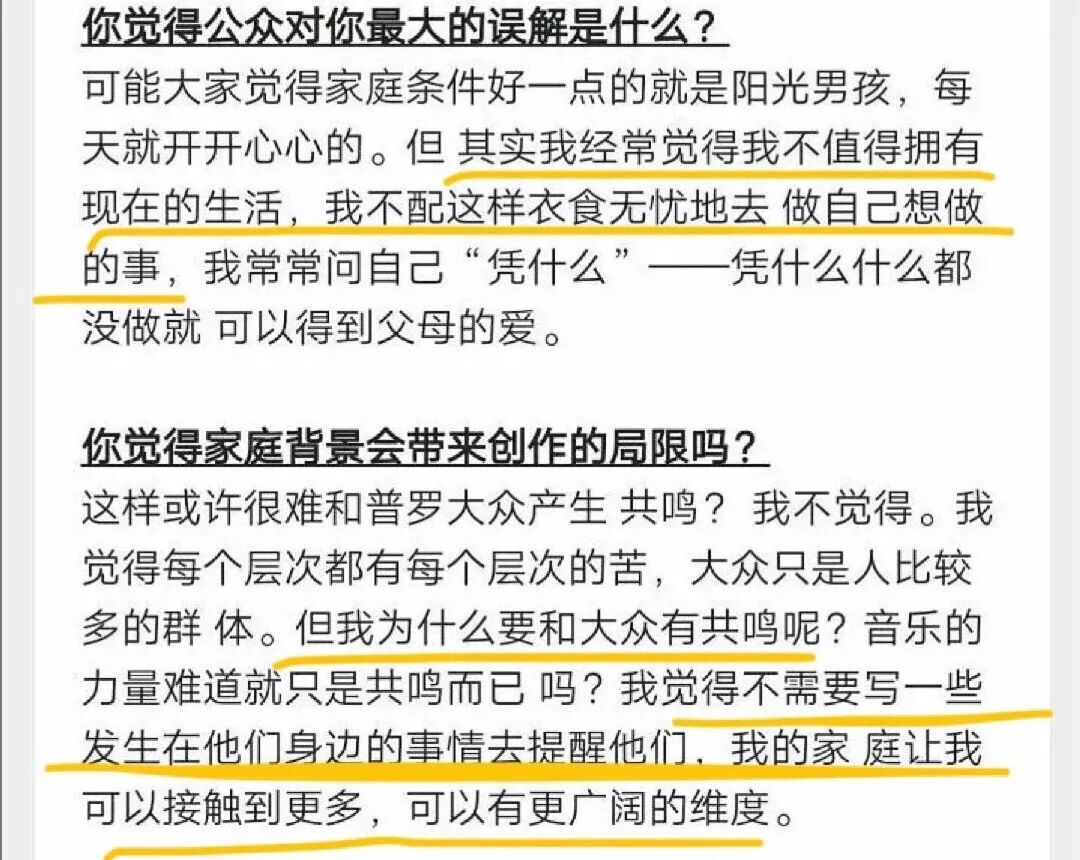 还有网友扒出了周震南曾经接受采访时说的话,他曾说“我为什么要和大众有共鸣?我的家庭让我可以接触到很多,可以有更辽阔的维度;我经常觉得自己不值得拥有这样的生活,不配这样衣食无忧的去做自己想做的事”。