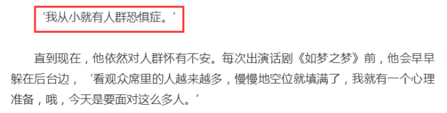 而胡歌自己坦言“我从小就有人群恐惧症” ,演出前会紧张,甚至给袁弘做伴郎都想过中途退出,只因为人太多就想躲开。