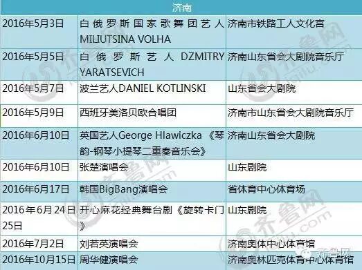 近日,山东省文化厅公布,韩国组合Bigbang将于6月17日、19日在省体育中心体育场、青岛国信体育中心举办演出活动。除此之外,陈奕迅、刘若英、周华健、岳云鹏等一大波明星将来济南