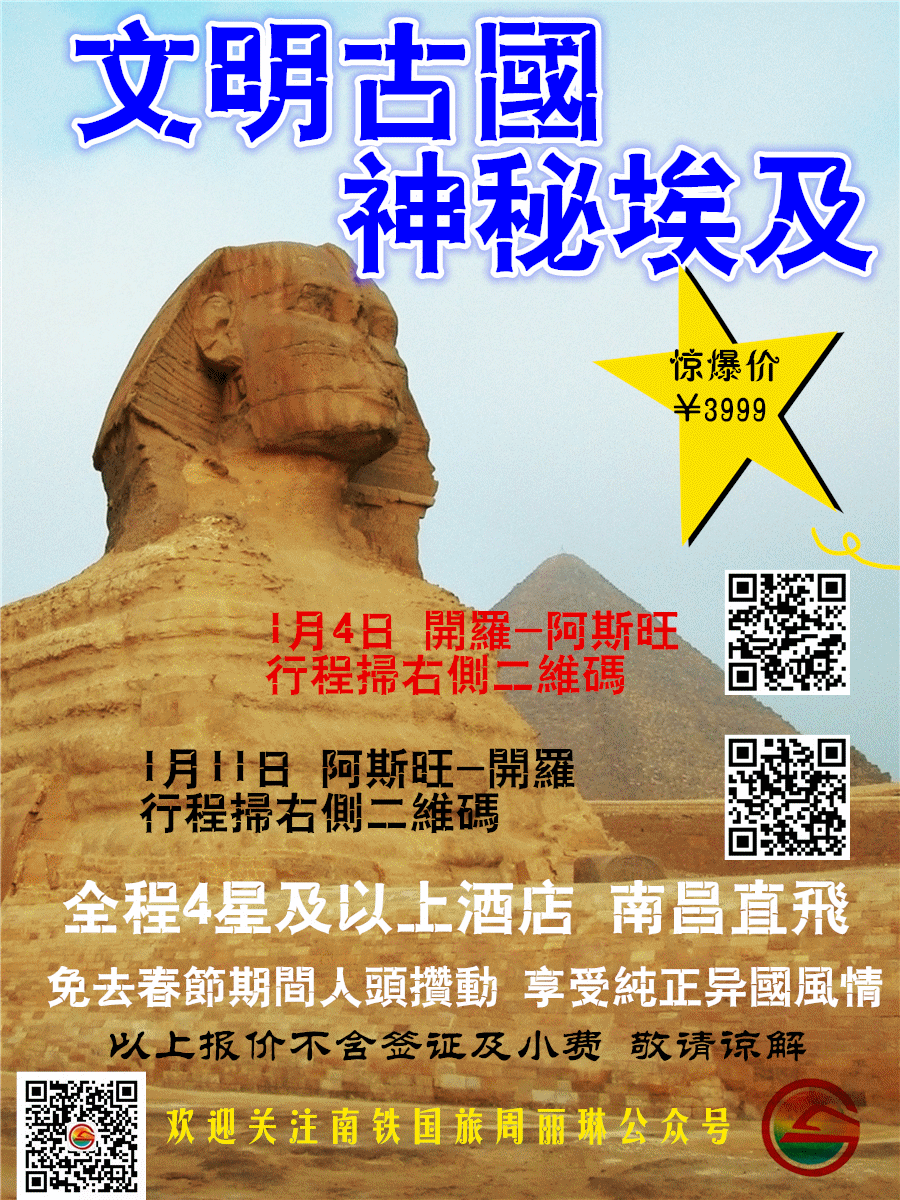 埃及是个自由行难度非常高的国家,首先签证不容易办,另外埃及局势动荡,旅游市场管理混乱,不建议自由行,也不建议跟陌生人说话。