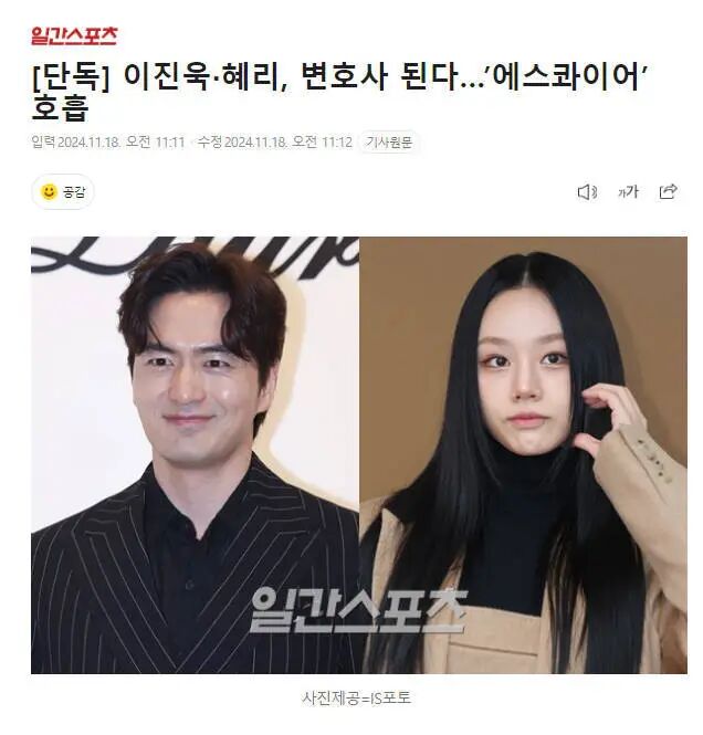 演员李阵郁和惠利将出演新电视剧《Esquire》,于明年3月开机。