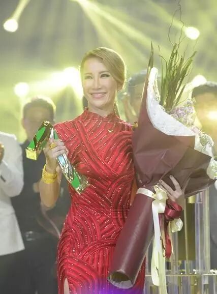 穿着15年前上奥斯卡颁奖礼时的红色礼服的李玟