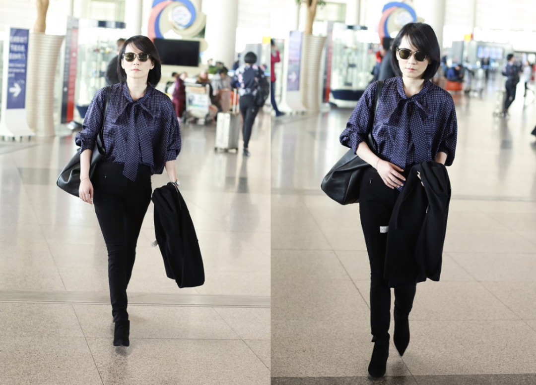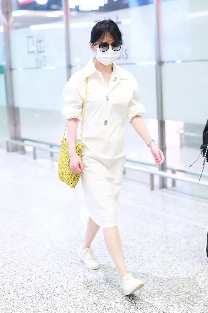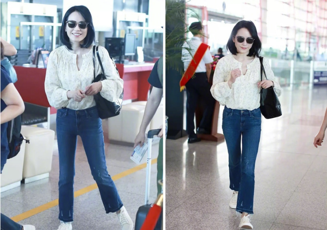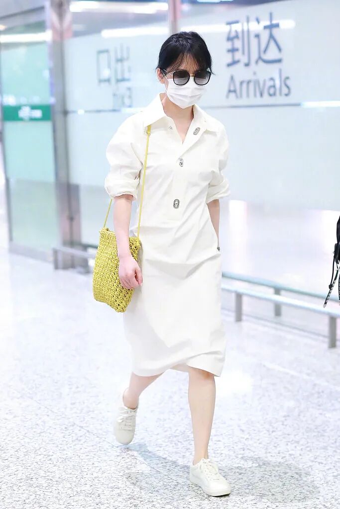 因此不得不说,俞飞鸿越老越有韵味,穿白色衬衫裙走机场,藏不住的高级感。