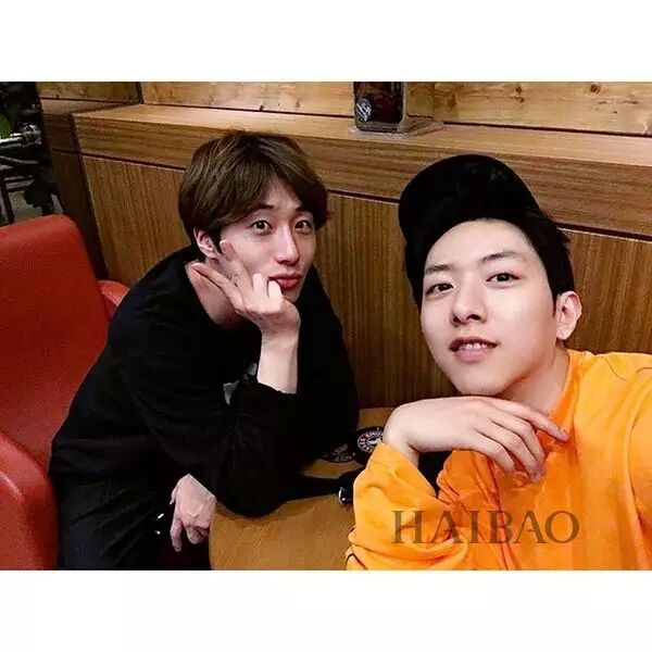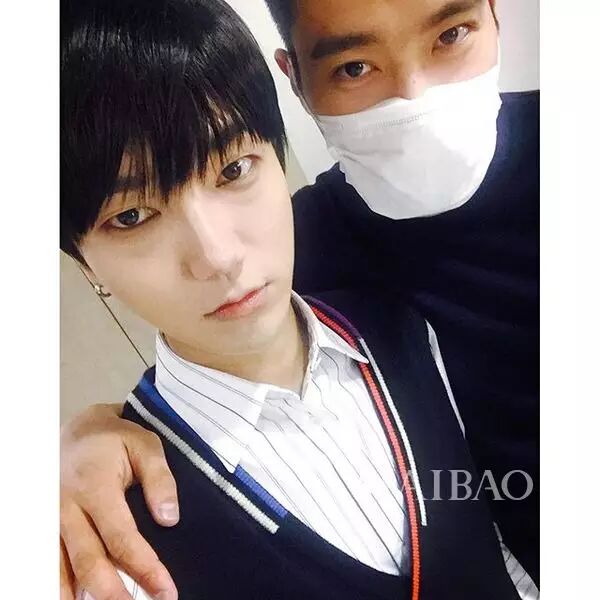 Super Junior组合成员艺声和EXO组合成员边伯贤最新私照