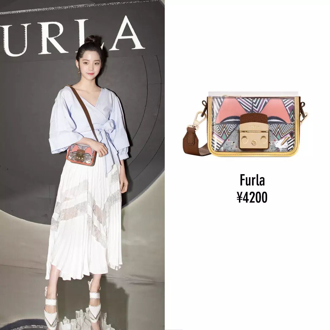 现身Furla的她一件牛仔蓝条纹衬衫配上蕾丝拼接百褶裙,简直就是小仙女,背的正是Furla本季的新包包,脚上的鞋子也好好看。