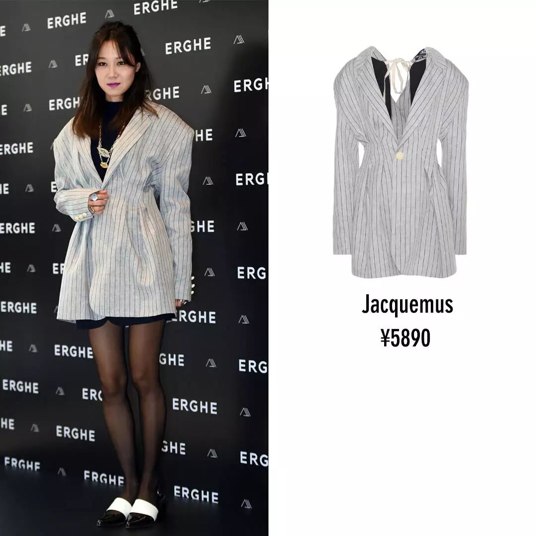 廓形西装外套来自Jacquemus,我觉得她演绎的不错。毕竟这种穿上显得肩宽一米八的衣服真不怎么好驾驭。