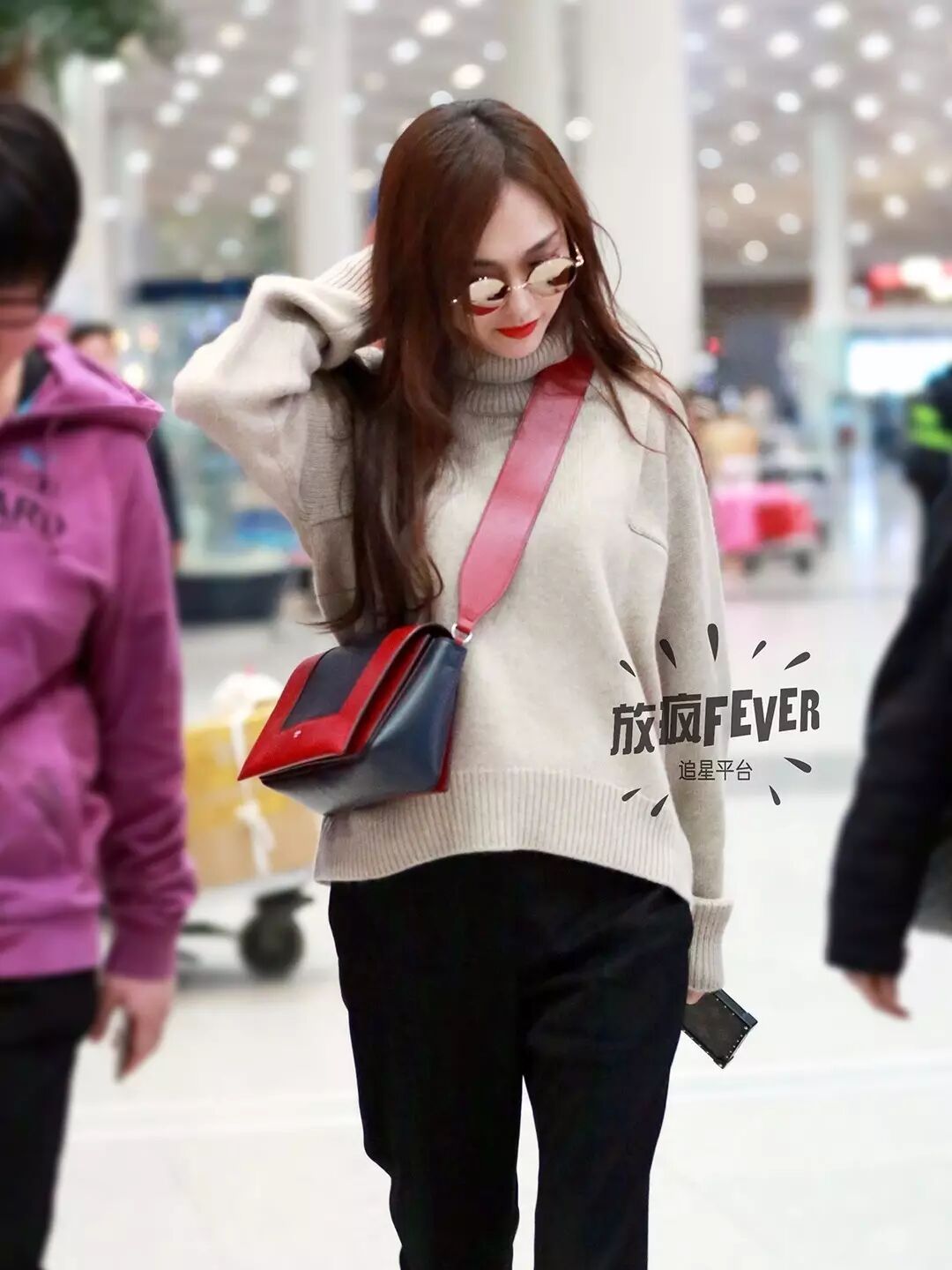 你们的糖糖近日穿了件浅驼色毛衣和黑色休闲裤出现在机场,软糯的毛衣是Céline 17的早春款。