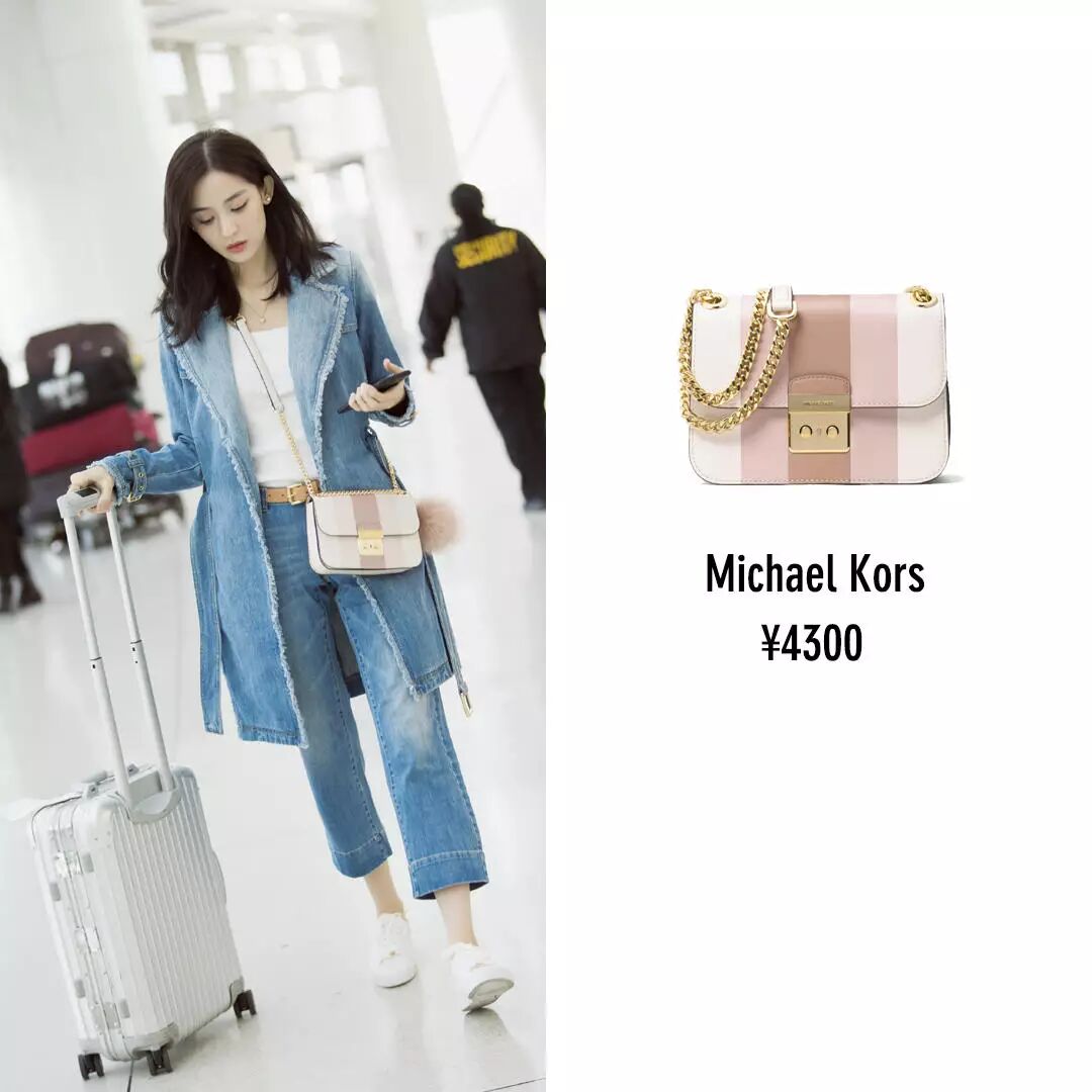 还是all denim都不忘背着它。实际上不仅包包,那天她全身穿的都是MK,不要再以为MK只出包包啦,人家的成衣照样好看好吗!