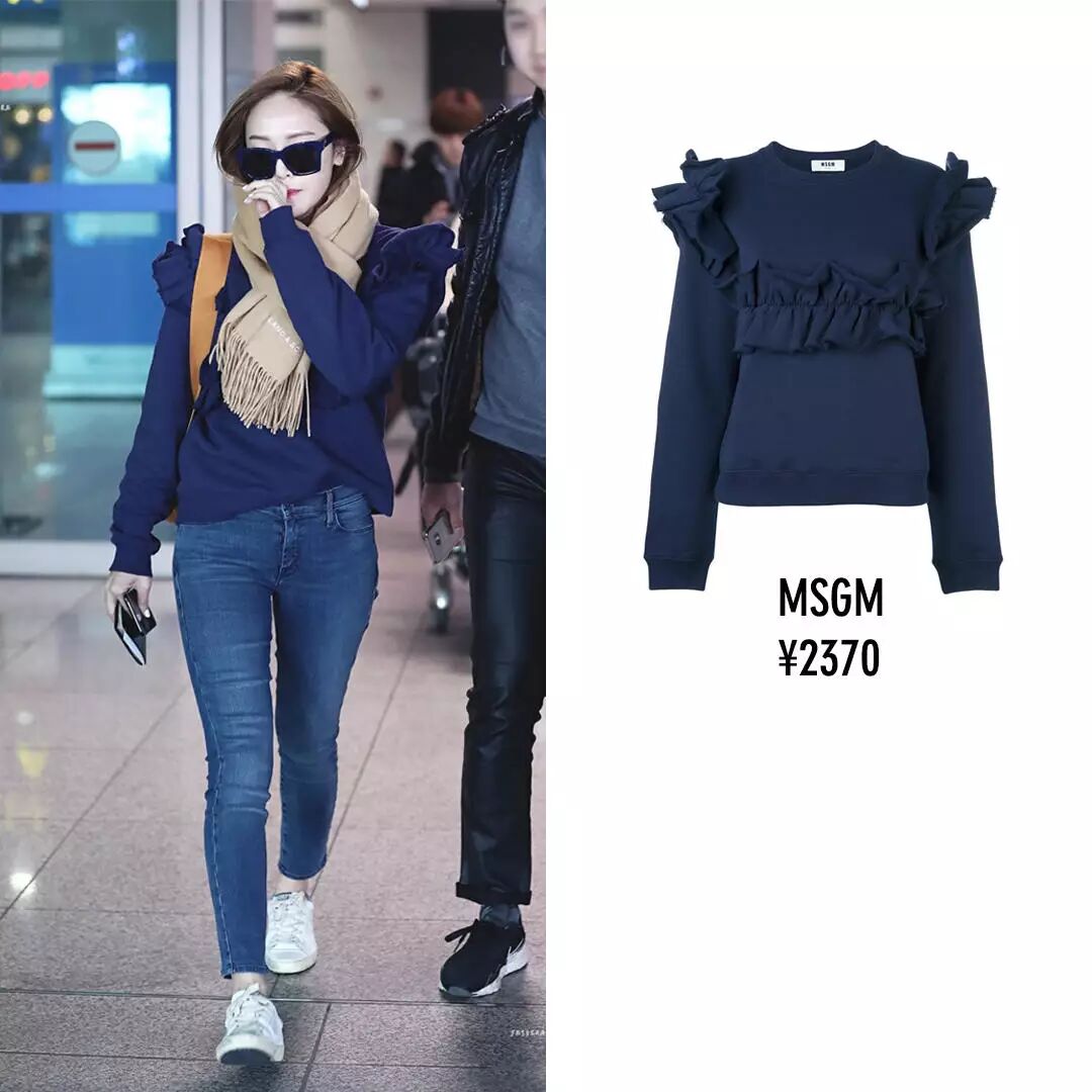 围巾和墨镜都是小姐姐自己的品牌Blanc & Eclare,荷叶边卫衣来自MSGM,简简单单的单品就让人赏心悦目。