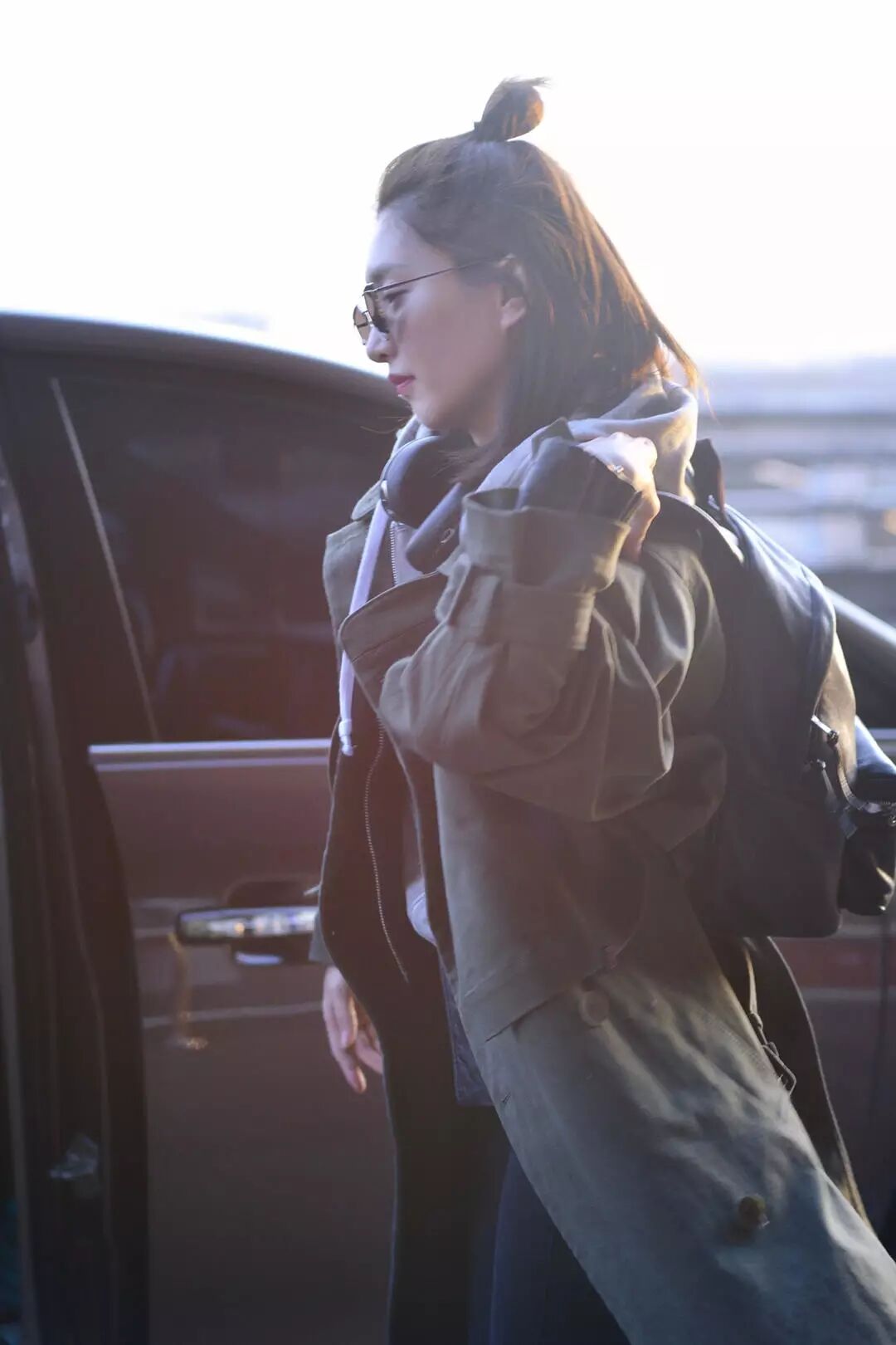 江疏影为了拍摄花儿与少年现身机场,身背Saint Laurent双肩包,扎了个半丸子头,很有出门旅行的氛围。