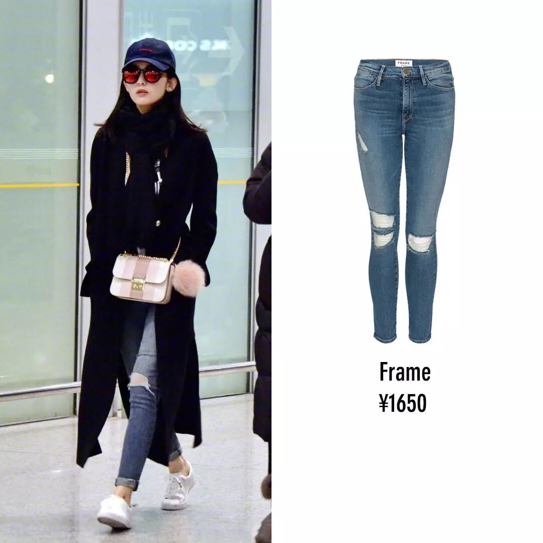 这不,前几天还在说今年流行猫跟鞋,她就穿上了,虽说这条看似时髦的牛仔裤显胖又显矮,不过没关系啊,穿上及踝靴的她腿显得更短了。没有帮她P图是我的错。