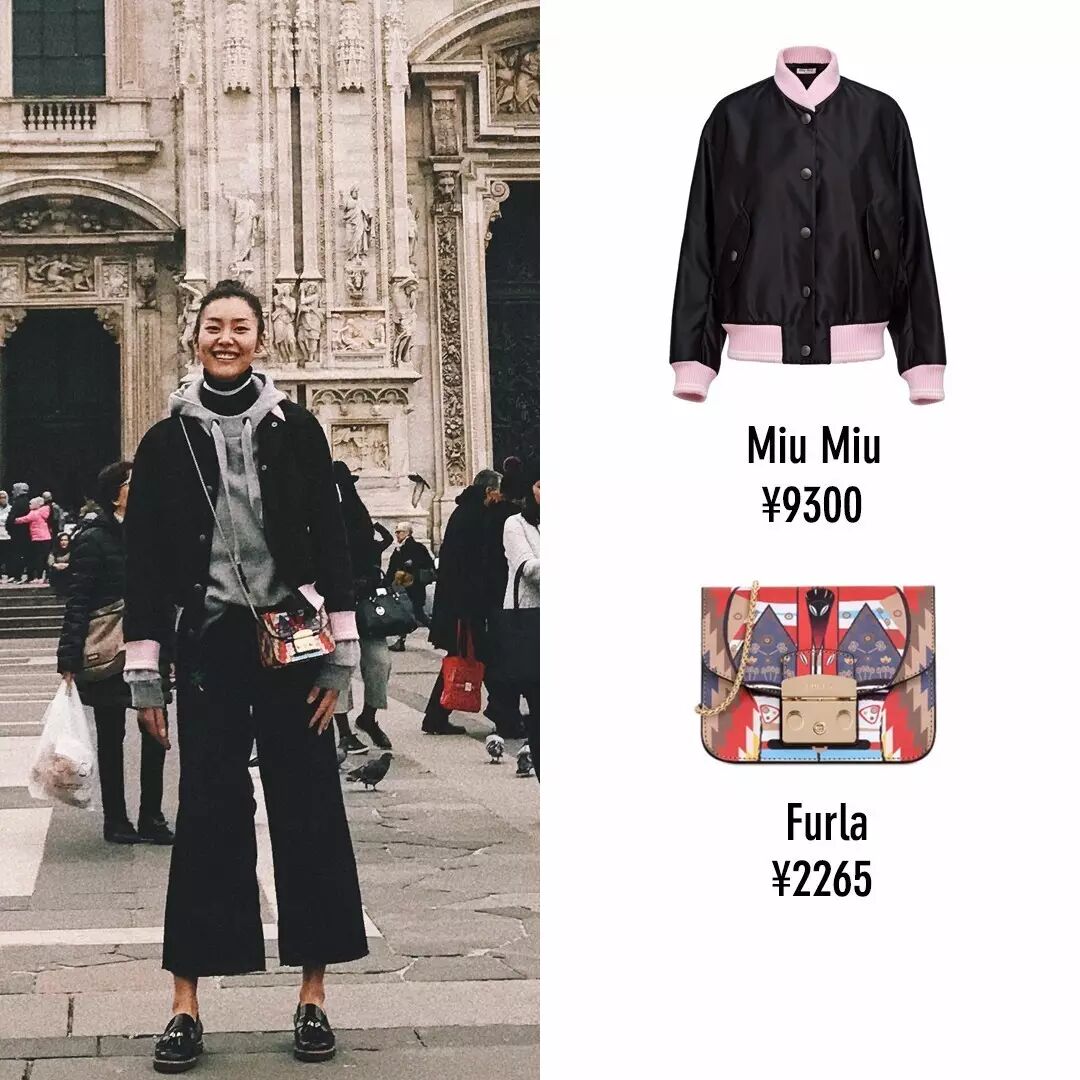 粉色包边棒球服来自Miu Miu,高领毛衣和休闲卫衣的混搭,穿了条MO&Co阔腿牛仔裤。身背Furla新款包包,看的我想旷工去旅行。