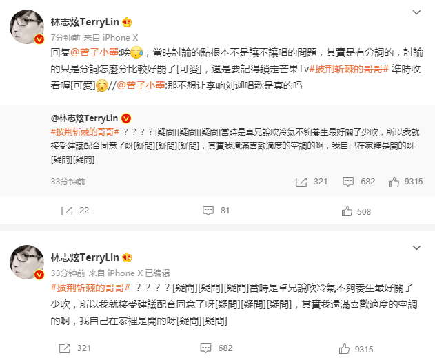 随后《披荆斩棘的哥哥》为了拆穿林志炫说谎,竟然在花絮中播放了赵文卓不开空调的原因,赵文卓表示,是因为林志炫说开空调会嗓子干,所以才不开的。