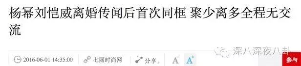 或许也是因为同框画面太少,导致大家觉得大幂幂跟刘恺威的婚姻已经摇摇欲坠了。。。