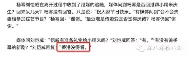 大家都知道大幂幂的翻译官正在热播,于是媒体就问刘恺威有没有追,刘恺威就简单回答了一句香港没得看。