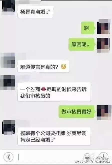 月初一则疑似券商的爆料对话,再度传出杨幂离婚