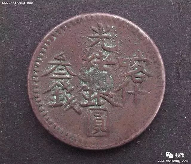 清朝灭明以后,经过对准噶尔的长期战争,至乾隆二十四年(1759年),将天山南北、葱岭以东大片土地收入了中国版图。道光七年(1827年),清扬威将军长龄在阿克苏铸银币,银币仿照红钱式样,园形方孔,面文“道光通宝”,背面为左满文“宝”,右维吾尔文“阿”字。每枚银币重一钱,抵红钱十六枚,是新疆在未建省以前清廷最早铸的银币。但是,由于当地世居民族习用地方政权打制的小“天罡”银币已久,清政府铸造的“道光通宝”银币,仅行用一年便不再流通了。