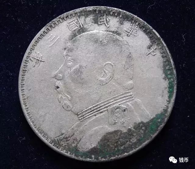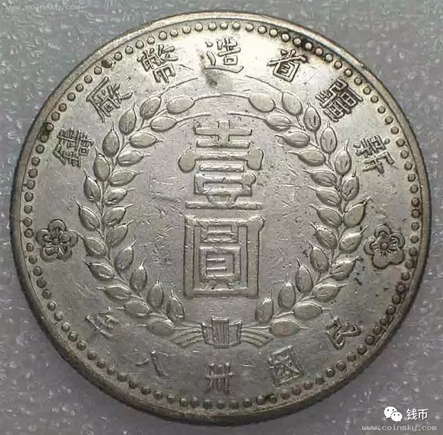 我们常说的新疆大头工艺水平落后,多见起皮,生绿铜锈,图案浅打,这些特点符合迪化水磨沟机造币厂土法机器压制银币的特点。其含银量低,袁像似西亚人,嘉禾具西域风格,版式繁多,说明铸造者没有中央政府颁发的模具,这点符合表麦斯武德当局私铸银元的史实。由此可以肯定,水磨沟机器局造币厂铸造的袁大头,就是新疆大头。新疆大头的版别不少,细分有10多种。