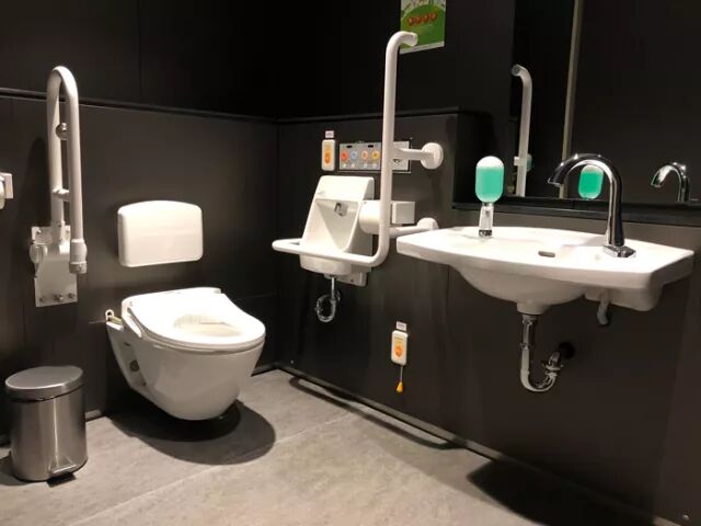 日本的公共场所大都设有多功能厕所,专为行动不便的老人、推婴儿车的人、残疾人和病人使用。这种厕所有宽敞的推拉门,会设置无障碍扶手,扶手的高度、距离都经科学计算而设计,方便使用者起身。
