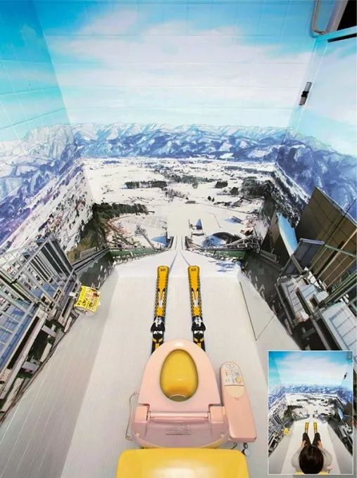 这里可以让你体验到坐在滑雪跳台上的刺激,这间厕所建立在长野县斑尾高原滑雪场的“レストランハイジ”,逼真的环境,让人有一种莫名的悸动。