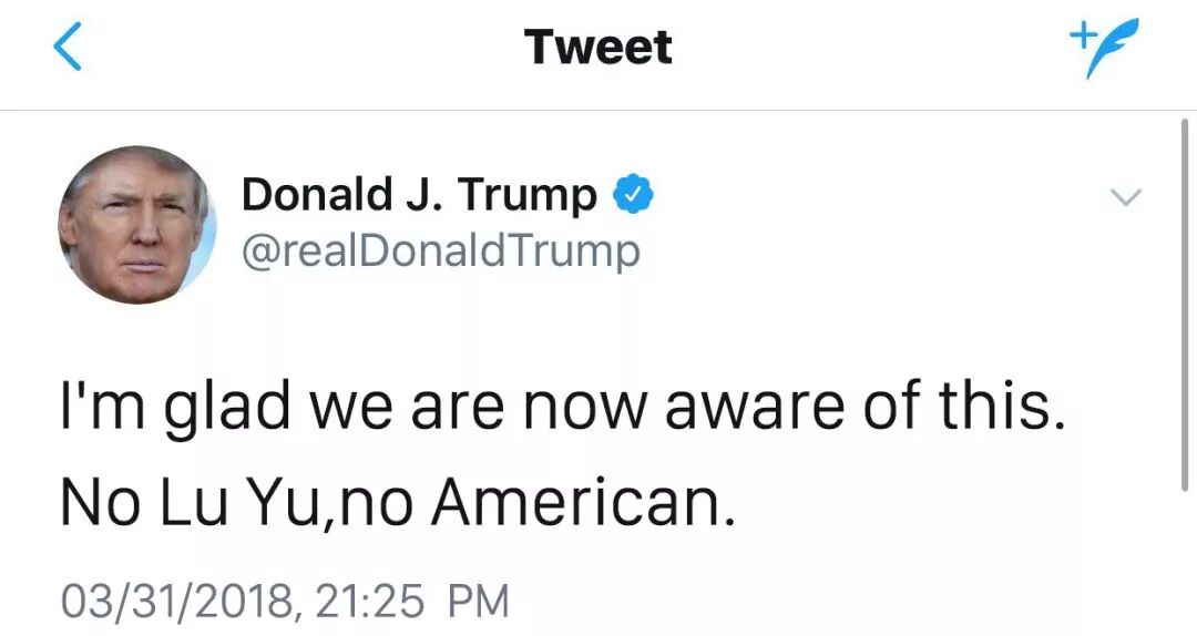 在众议院投票结束之后,美国总统特朗普立即发布推特表示祝贺,他说:“很高兴我们现在终于意识到了这一点,没有陆羽,就没有美国。”