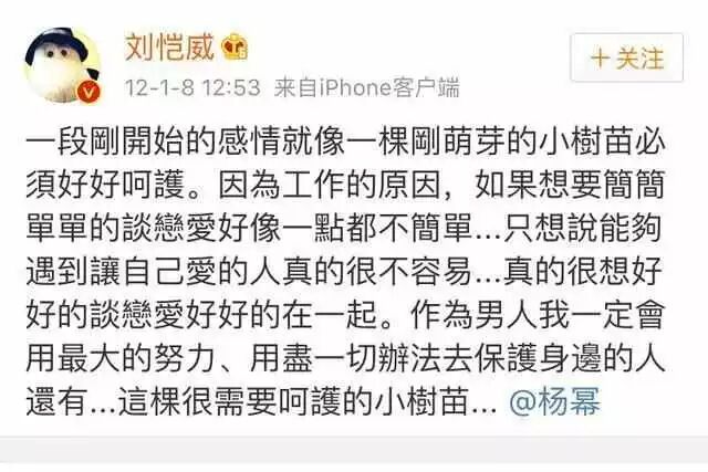 曾经,刘恺威发微博称,很想跟杨幂好好的谈恋喜好好的在一同。并且表示会用最大的努力去呵护杨幂这棵小树苗。听起来,这本应该是大叔与萝莉的甜美爱情啊。