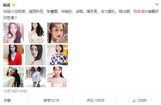 小编我还看到网友们评比90后小花旦的“活动”,其中就有杨紫同学: