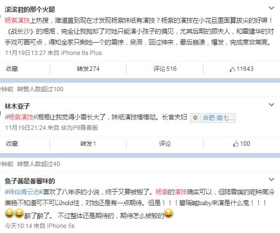 网友很系统地说到之前杨紫同学拍过的《战长沙》来分析杨紫的演技,很多网友都表示样子演技提升了不少呢!小编觉得下一个火的90后女星很有可能是杨紫: