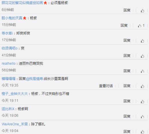 打开评论,随便截个图,多数网友都看好杨紫,看来杨紫的人气还蛮高滴~~~