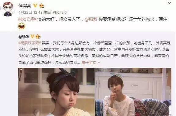 后来,杨紫在微博里写下了这样一段话,她说“邱莹莹”是莽撞面,无知再加上拎不清等等,但反而这个不讨喜的角色对她来说,反而是一种历练。
