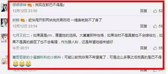 评论的偏向是实在是高的令人咋舌,几乎全是支持离婚的粉丝:
