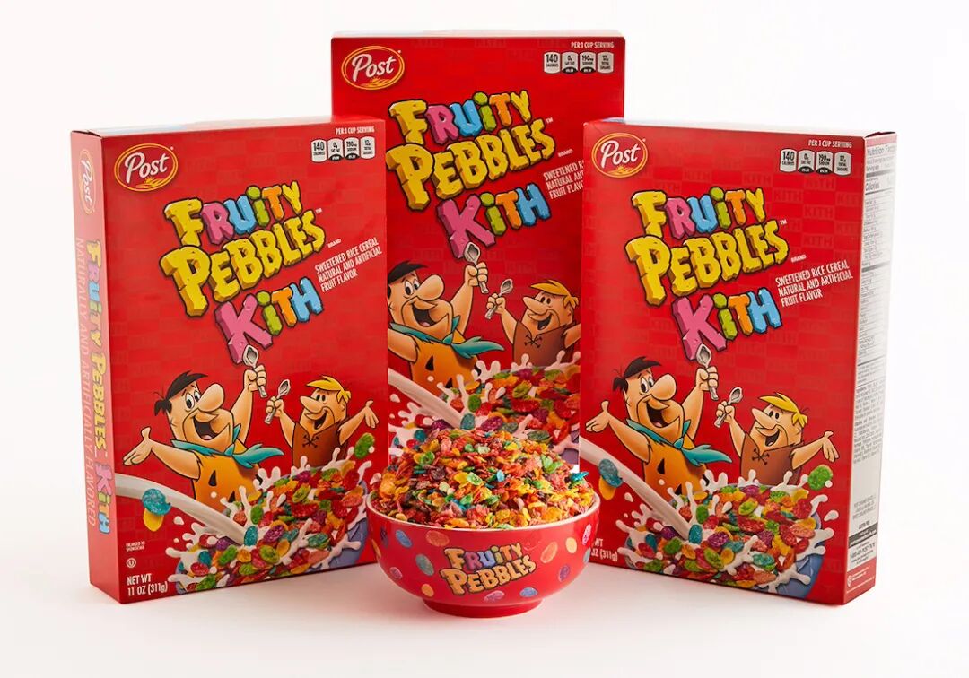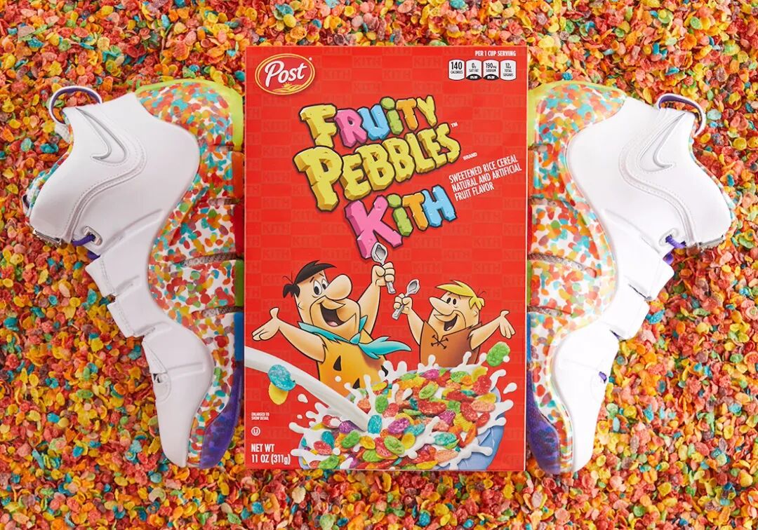 近日,KITH Treats 携手 Fruity PEBBLES™、Nike,推出「Fruity Pebbles」配色的Nike LeBron 4合作鞋款,以庆祝美国国家谷物日。除了鞋款外,还推出了限量版麦片盒和定制麦片碗。
