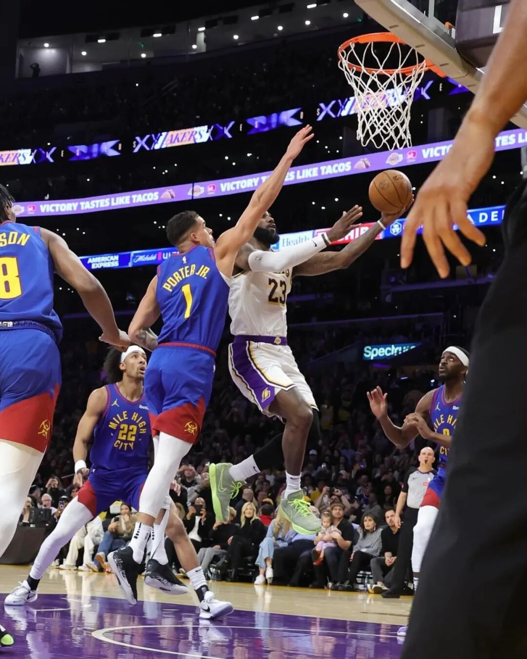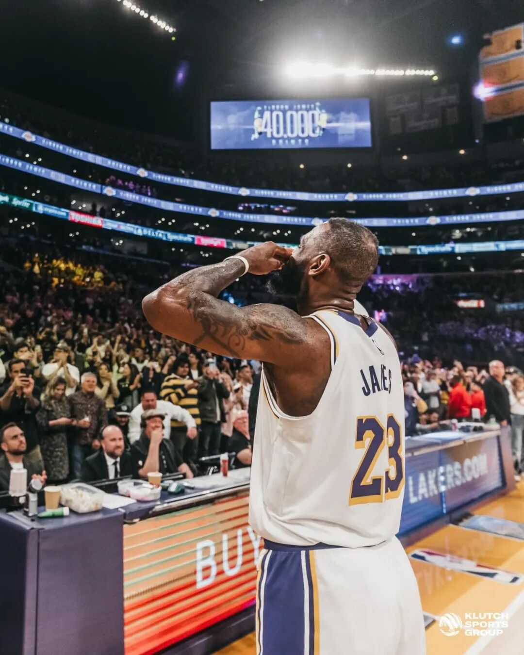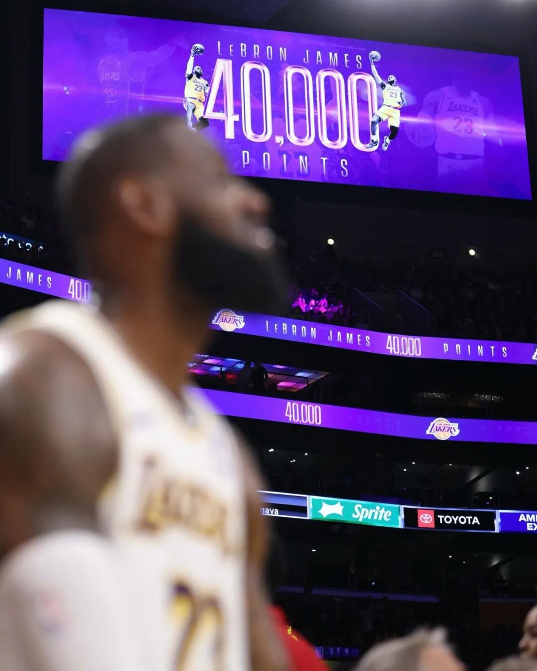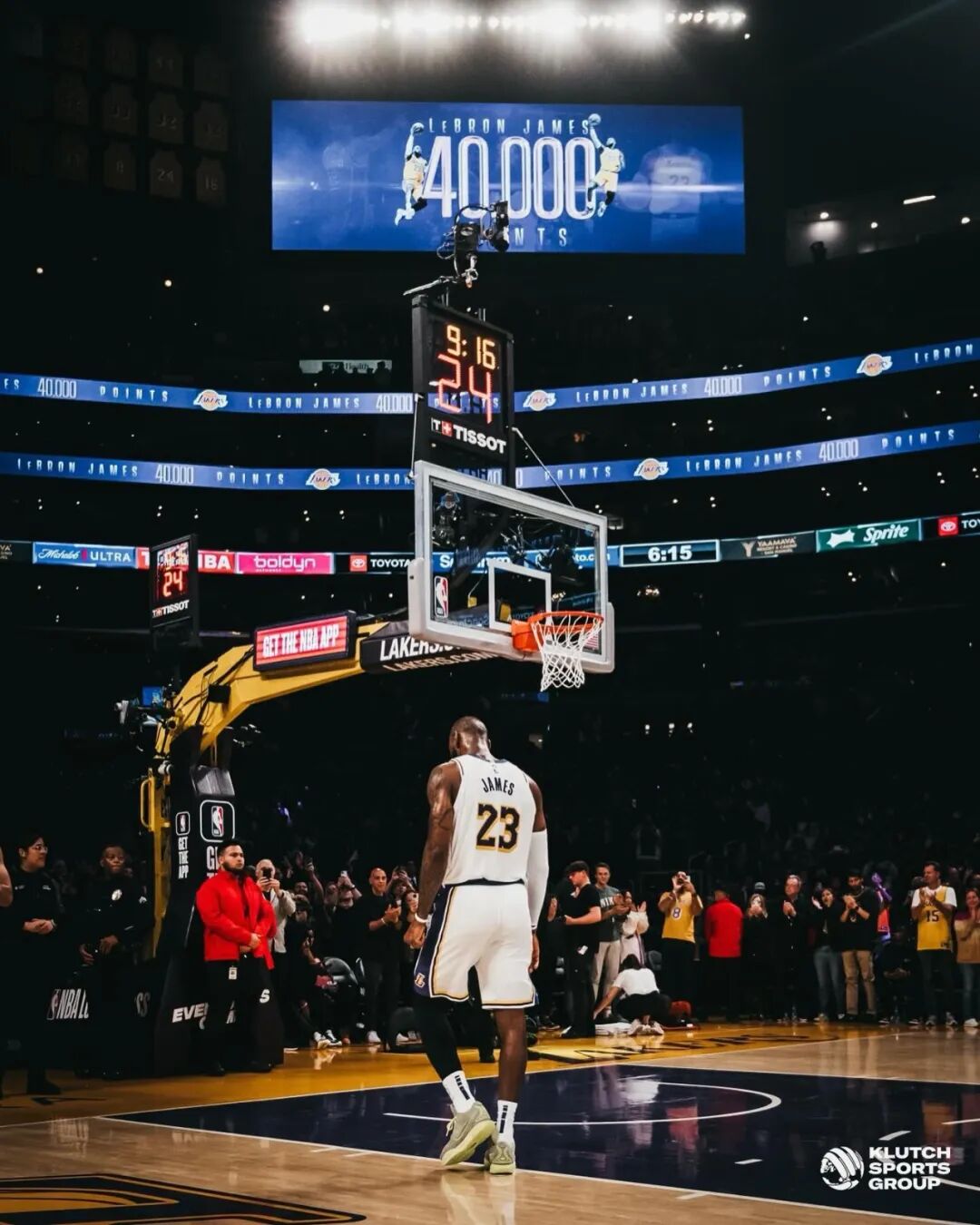 在湖人与掘金比赛次节,詹姆斯用一记转身突破上篮得到 NBA 生涯第 40000 分,成为 NBA 历史首位生涯总分达到 4w 的球员,也是NBA历史首位同时达到 4w 得分+ 1w 篮板+ 1w 助攻的球员。“1 of 1 ?”