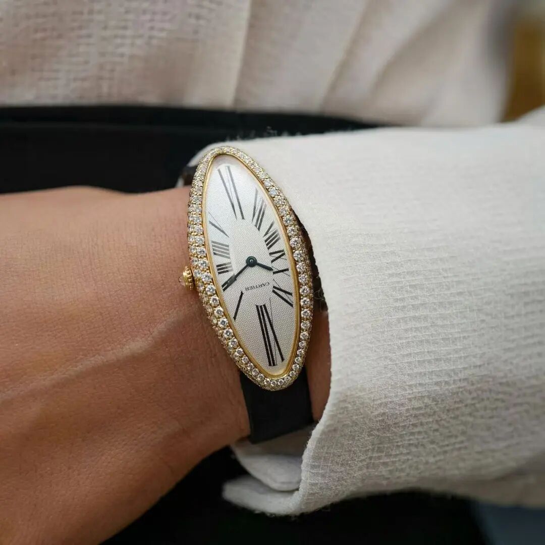 此外,细心的网友还发现了宋慧乔此次生日图集里的 “腕表彩蛋”—— 在与大天使造型摆件的同框照中,她手腕上佩戴的正是卡地亚经典的 Baignoire Allongée(加长浴缸腕表),简约椭圆表壳搭配温婉气质,低调中尽显精致品味,与生日氛围完美契合。
