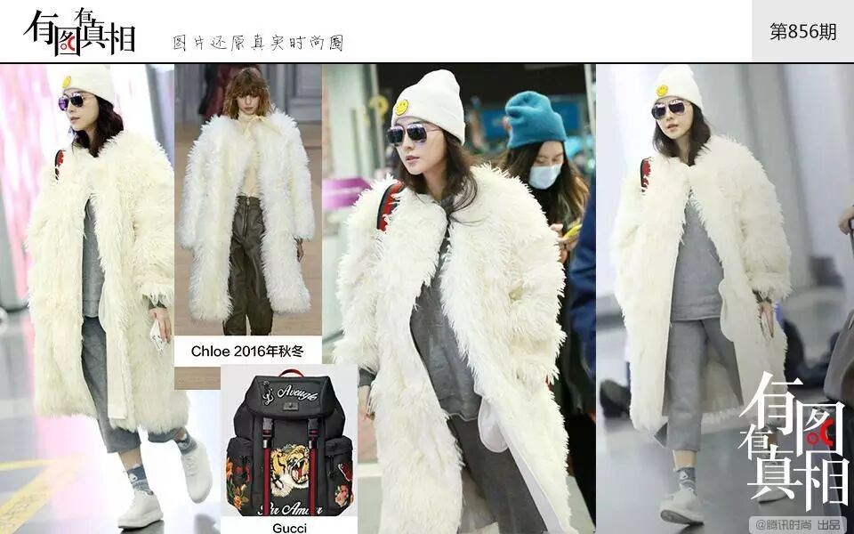 范冰冰身穿Chloe人造皮草大衣现身机场,内搭灰色套装清新亮眼,头顶的毛线帽也是超萌,范爷真是少女心十足!