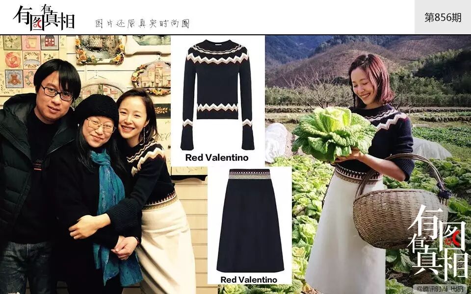 江一燕在微博po出一组家乡日常照,置身于田园,身穿Red Valentino针织衫和米色半裙,文艺而宁静,真是太美好。