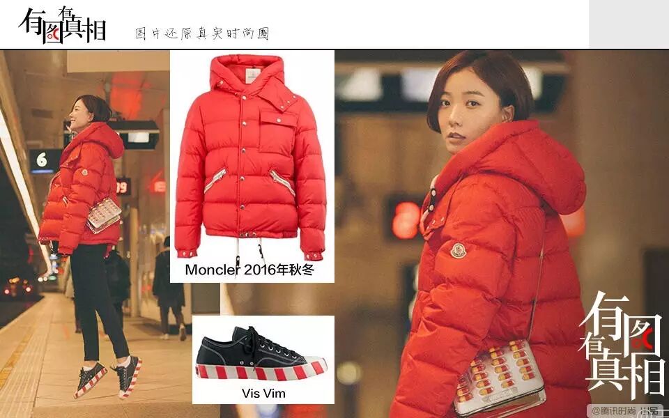 王珞丹穿着Moncler红色羽绒服赶火车,红红火火过大年。Moschino的胶囊包和Vis Vim帆布鞋亮点满满,俏皮有活力。