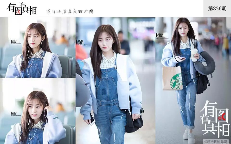 鞠婧祎现身机场,清新气质扑面而来。牛仔背带裤外搭Adidas by Stella McCartney运动外套,简直是行走的胶原蛋白!