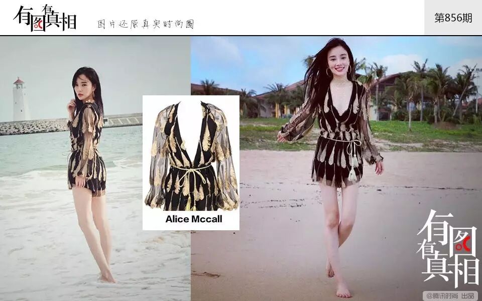 李小璐的沙滩照尽显肤白貌美好身材,羽毛连体裤仙气飘飘,来自澳洲潮牌Alice Mccall。