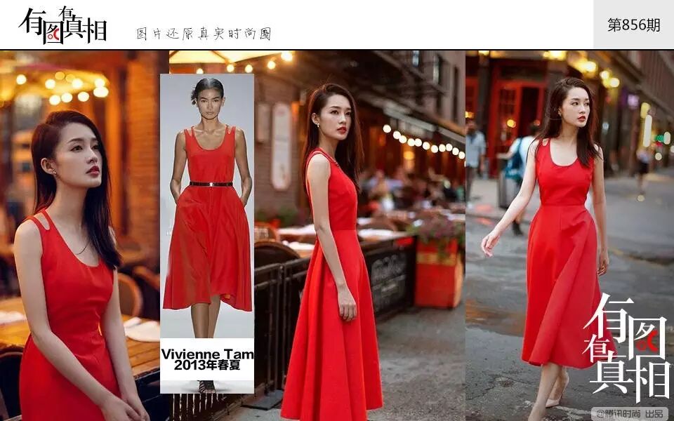 李沁身穿Vivienne Tam红色连衣裙漫步街头,和景色融为一体,简洁的造型把优雅浪漫演绎到淋漓尽致,美得如同画中人。