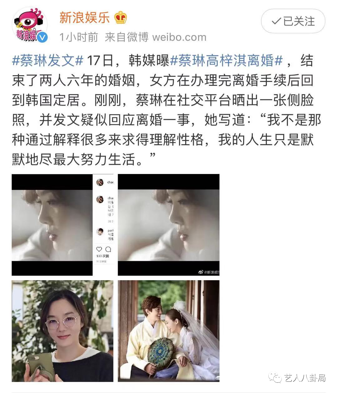 昨天,蔡琳社交平台发文疑似回应离婚“我的人生只是尽最大努力生活”,似乎通过默认的方式坐实了离婚传闻。