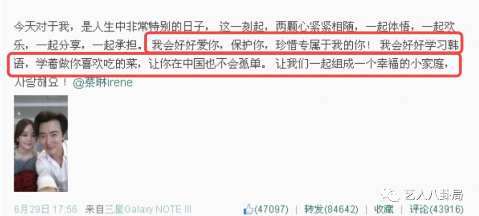 结婚当天,高梓淇发文说:“我会好好爱你,保护你,珍惜专属于我的你,我会好好学习韩语,学着做你喜欢吃的菜,让你在中国也不孤单!”