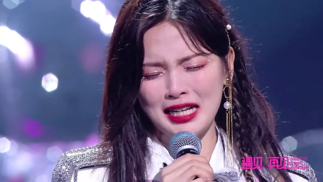 泪眼婆娑的少女,在完全走音,没有一句在调上的演唱结束之后,她成功的引爆了热搜。