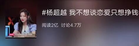 「不想恋爱只想赚钱」的念头,对杨超越来说绝对是上上策,但我劝你这次千万别学她,毕竟杨超越本就是锦鲤体质——幸运的代言人,快速地赚到钱后自然比我等凡人有更多的机会遇到对的人。