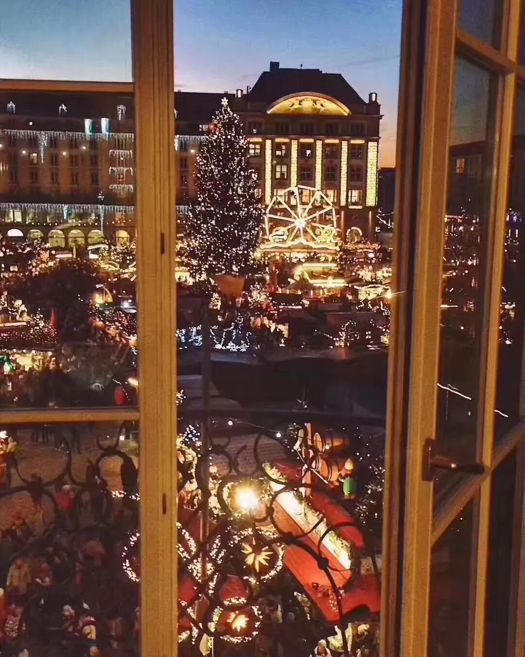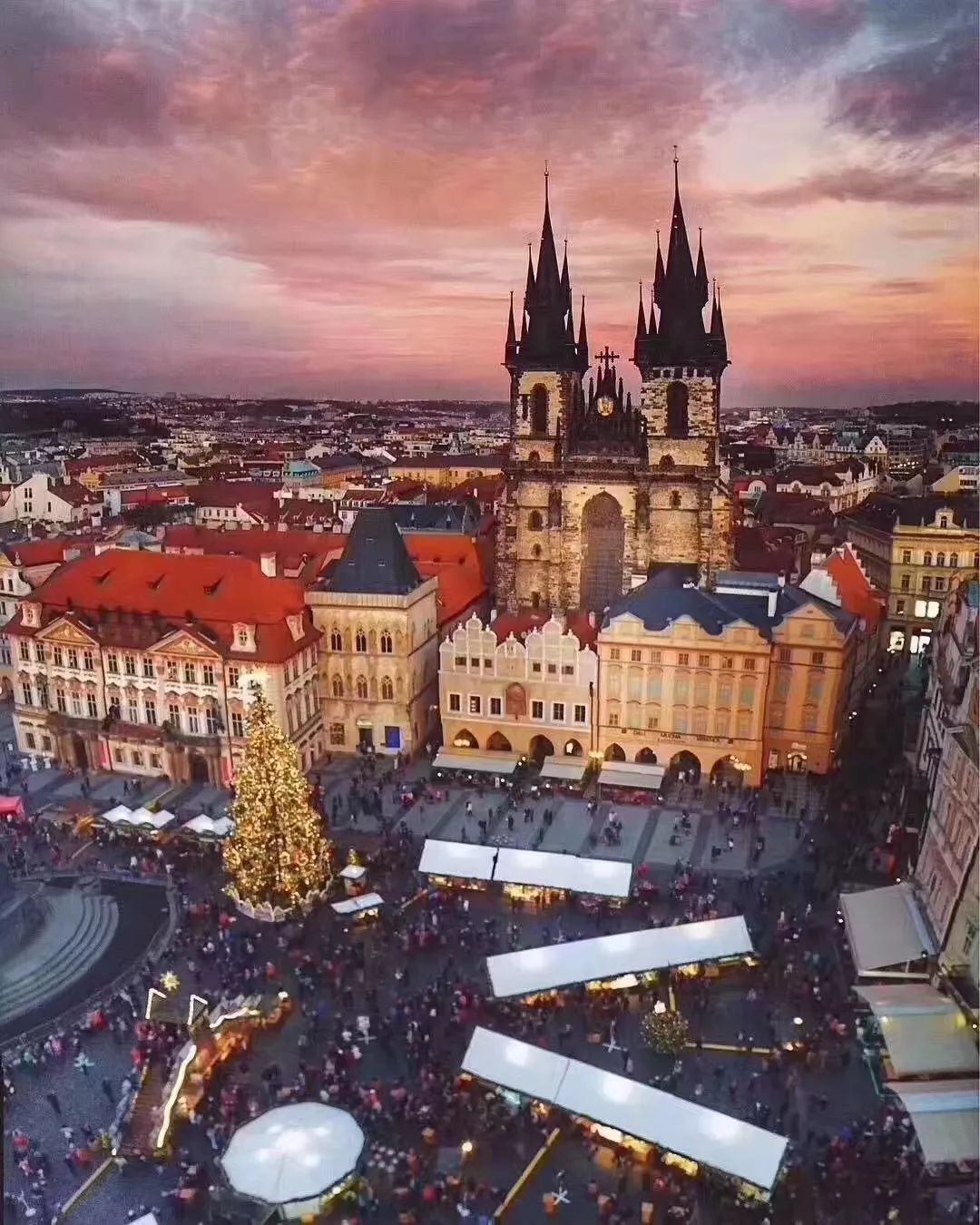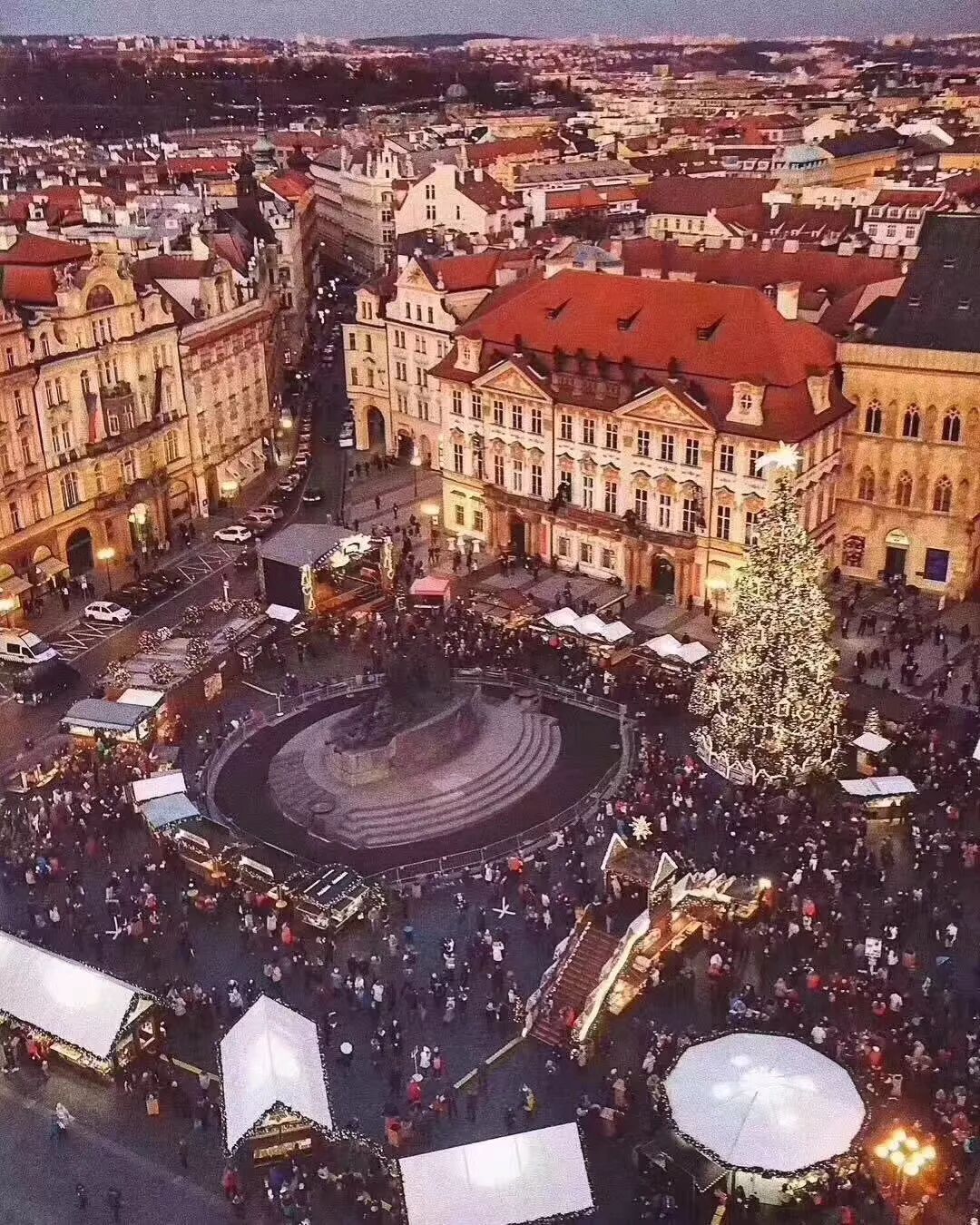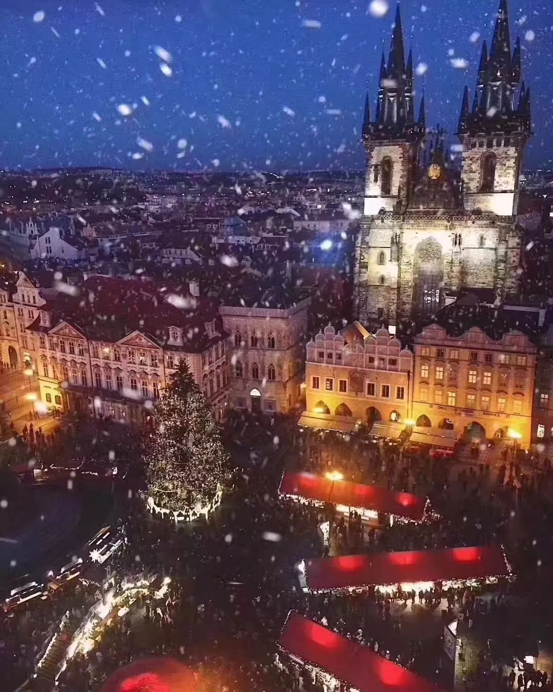 推窗看见,华灯璀璨、圣诞歌声飘扬、雪花纷纷坠落的——“布拉格广场”......