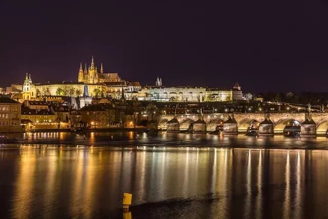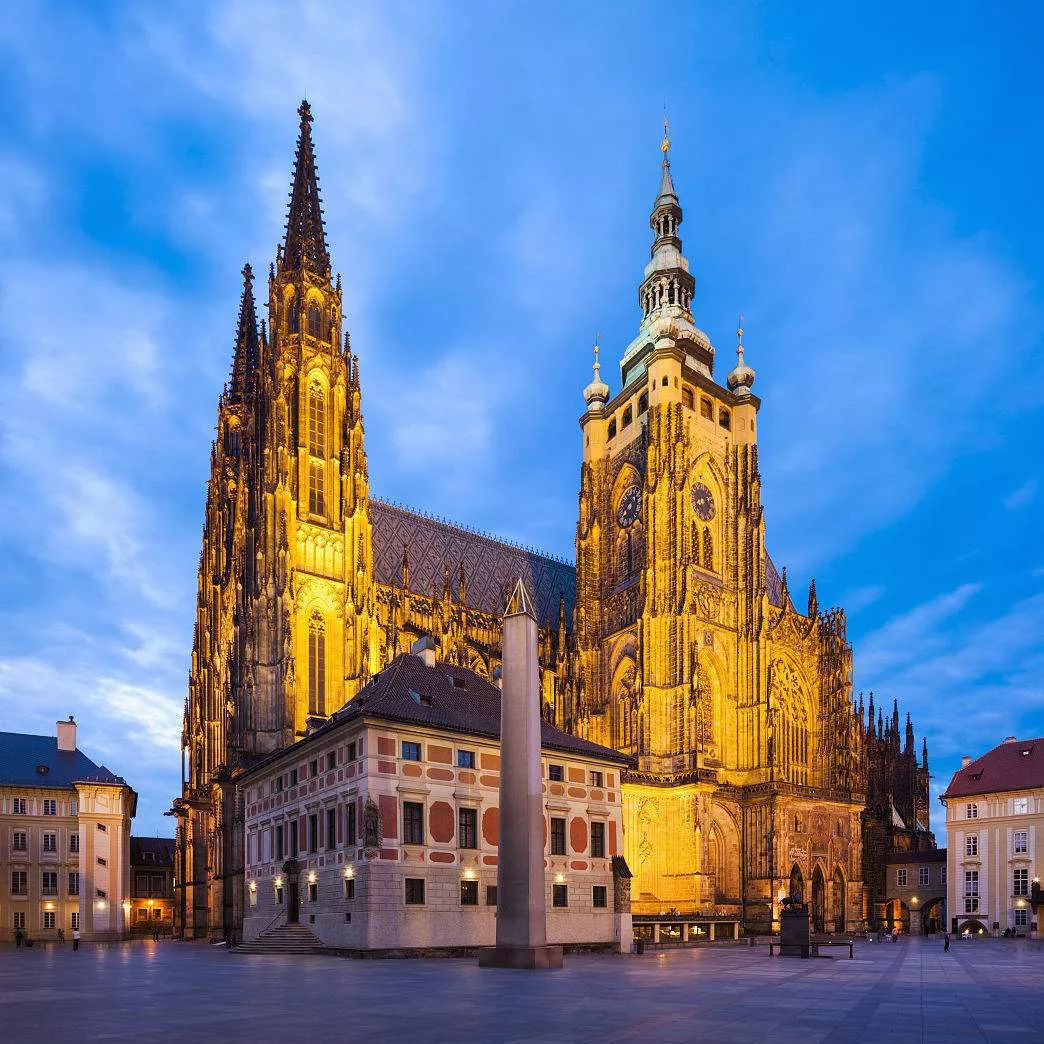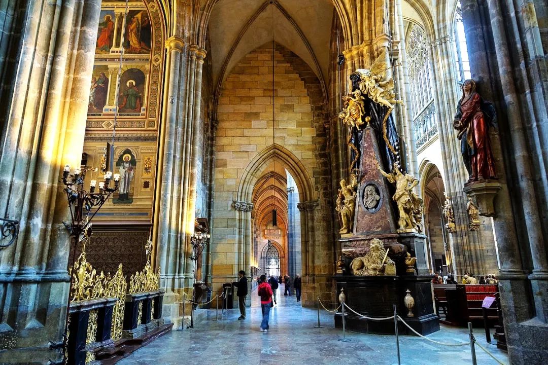 布拉格的著名地标之一圣维塔大教堂,历经三次扩建,足足用了600多年才完工。教堂的石柱交错排开,石柱上满是残殇的纹路痕迹,华丽的灯光洒在那些精致的木雕装饰上,整个教堂犹如珍藏着久远历史的博物馆。