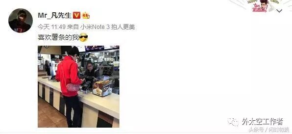 近日,由于工作宣传的原因,吴亦凡一直在国外,12月7日,他晒出一张在国外买薯条的近照,还配文:喜欢薯条的我!