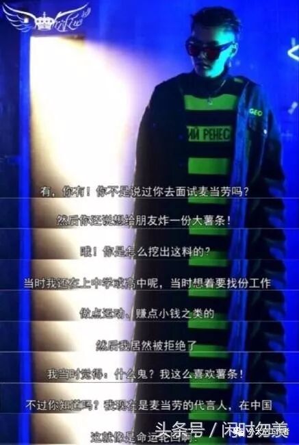 不过说到,吴亦凡喜爱薯条这一小癖好,还有一个小插曲呢。不久的一段采访中,吴亦凡就提到,从小就十分喜欢吃薯条,甚至还曾想到麦当劳打工,结果却被拒绝。不过,现在吴亦凡竟然成了麦当劳的代言人。这真是命运轮回呀,这下薯条是吃不完了吧!